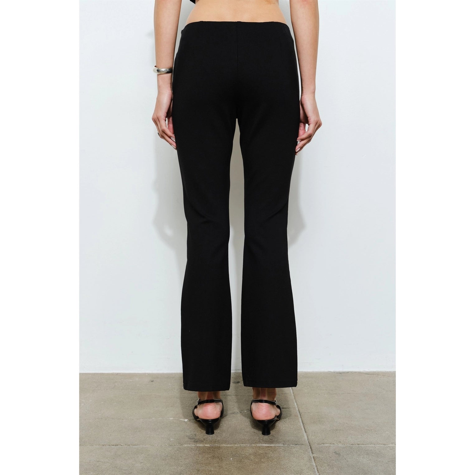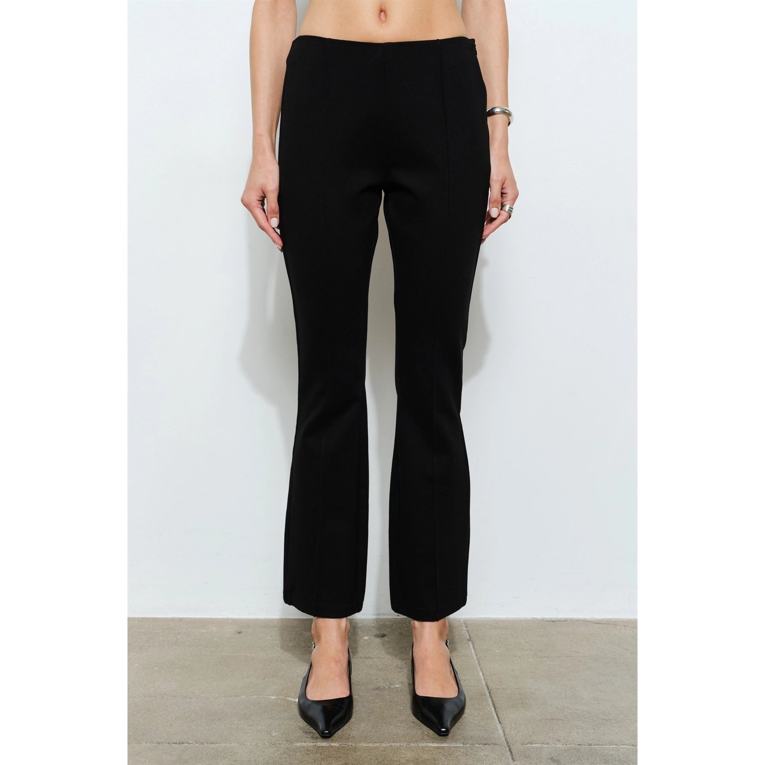 The Dominique pant expertly blends polish and comfort with its sleek, pull-on design and modern kick-flare silhouette. Crafted from a structured stretch knit, it features a center pintuck seam that visually elongates the leg. These trousers are a versatile foundation for both office and evening looks. S: 68% Rayon, 27% Nylon, 5% Spandex C: 95% Polyester, 5% Spandex