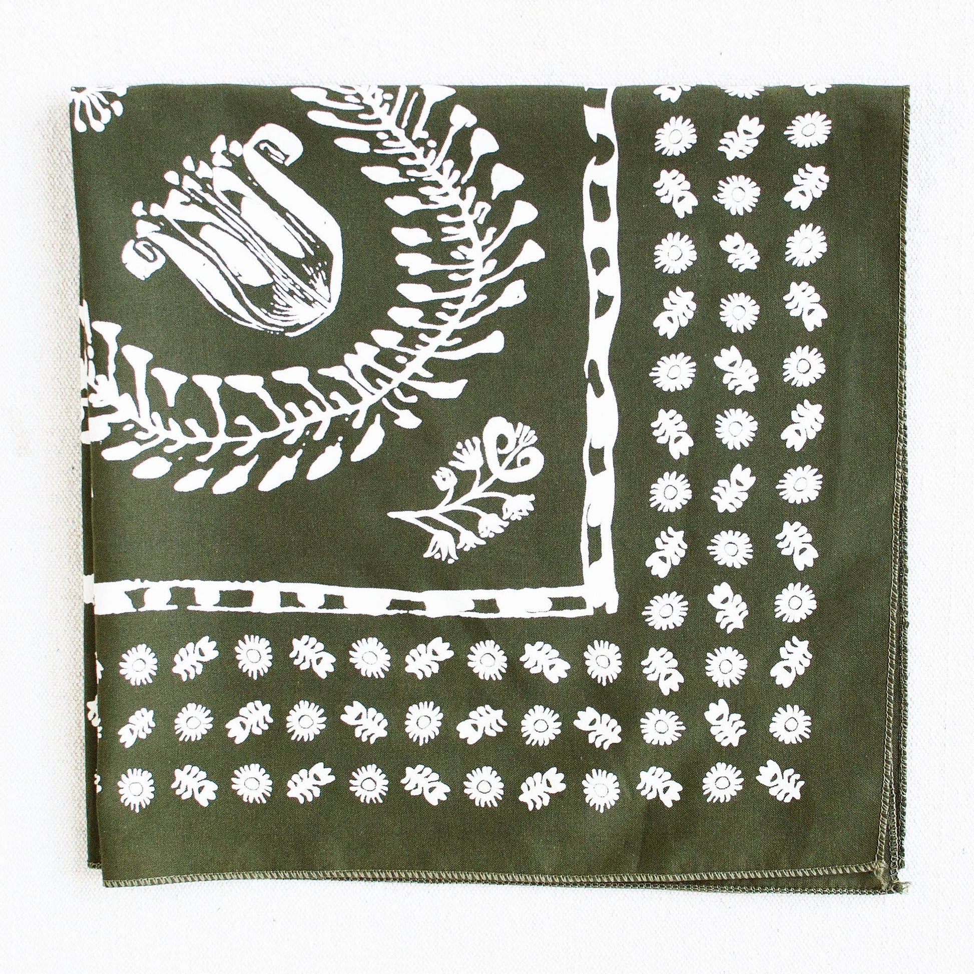 If you’re looking for a bohemian vibe, take a look at our floral bandana. Featuring inspiration from antique Bohemian textiles, this unique bandana offers a loose floral print. Perfect for use as a head bandana, a neckerchief, or to keep in your pocket as a handy kerchief or napkin.