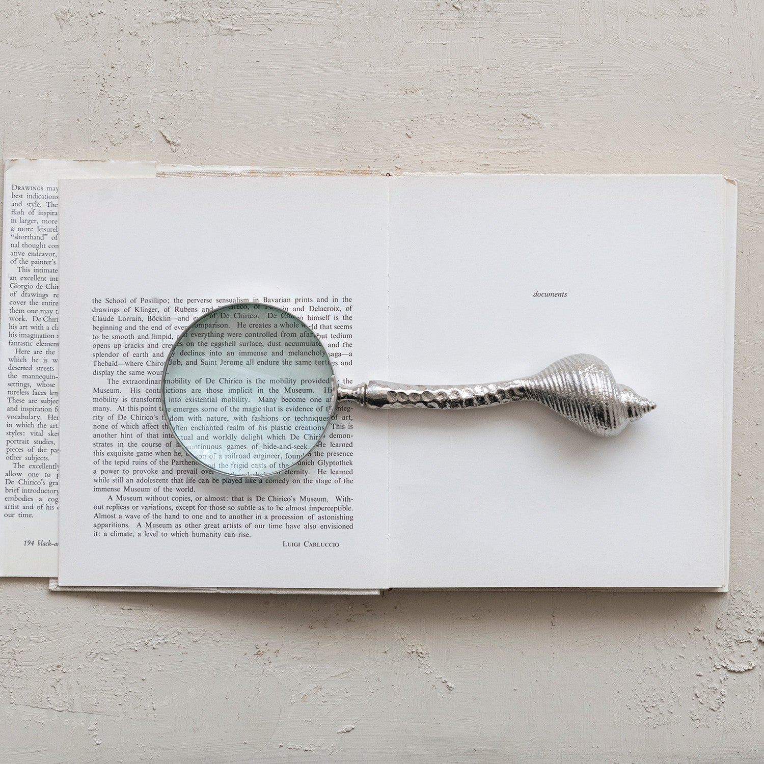 Cast Aluminum Magnifying Glass with Shell Shaped Handle