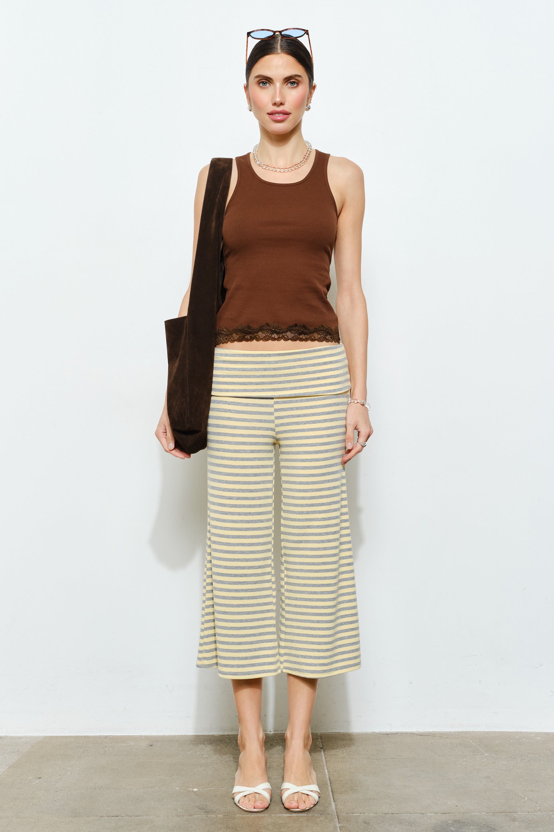 Ribbed tank with lace hem