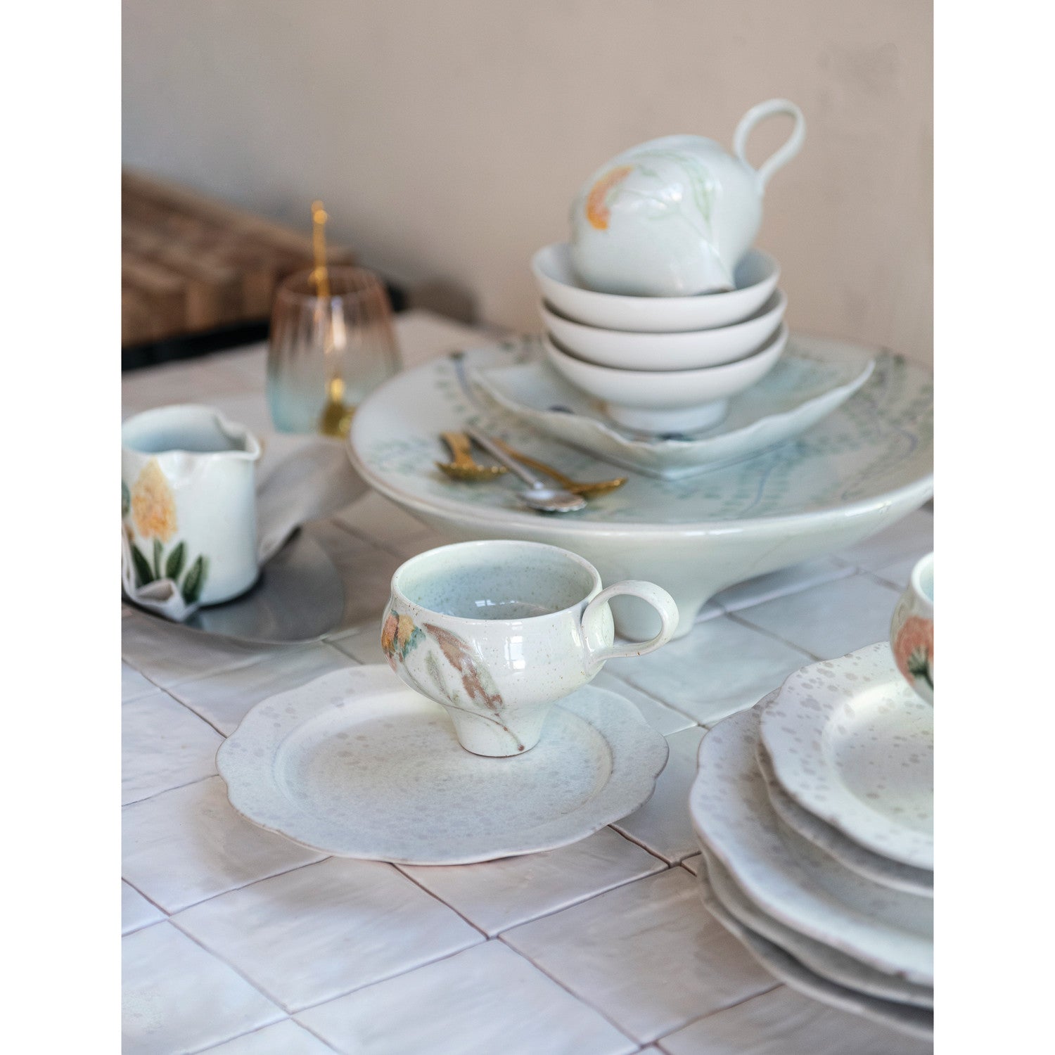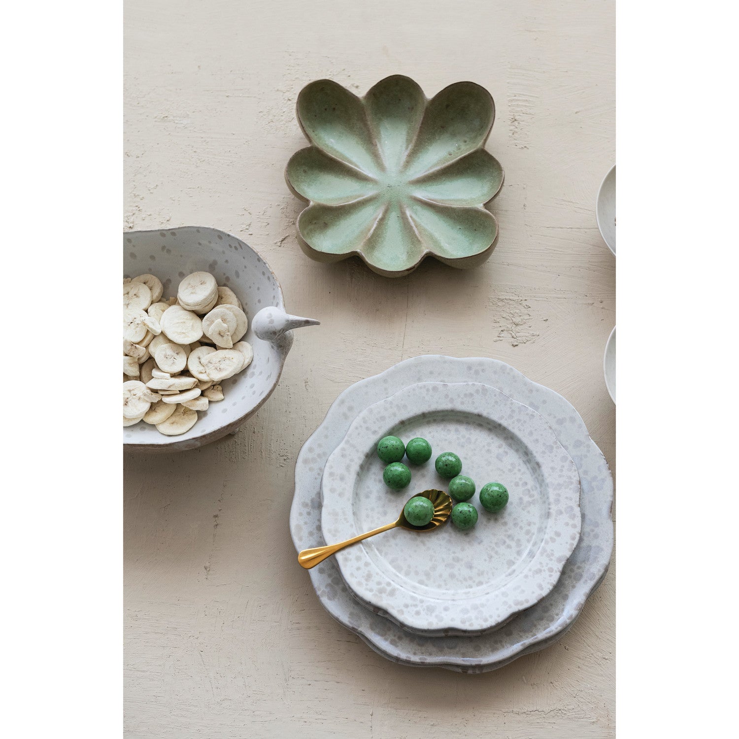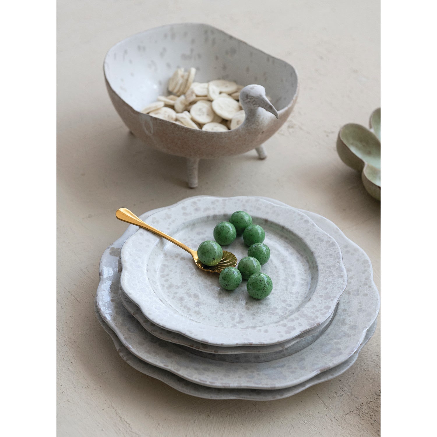 Stoneware Scalloped Plate, White Speckled (Each One Will Vary)
