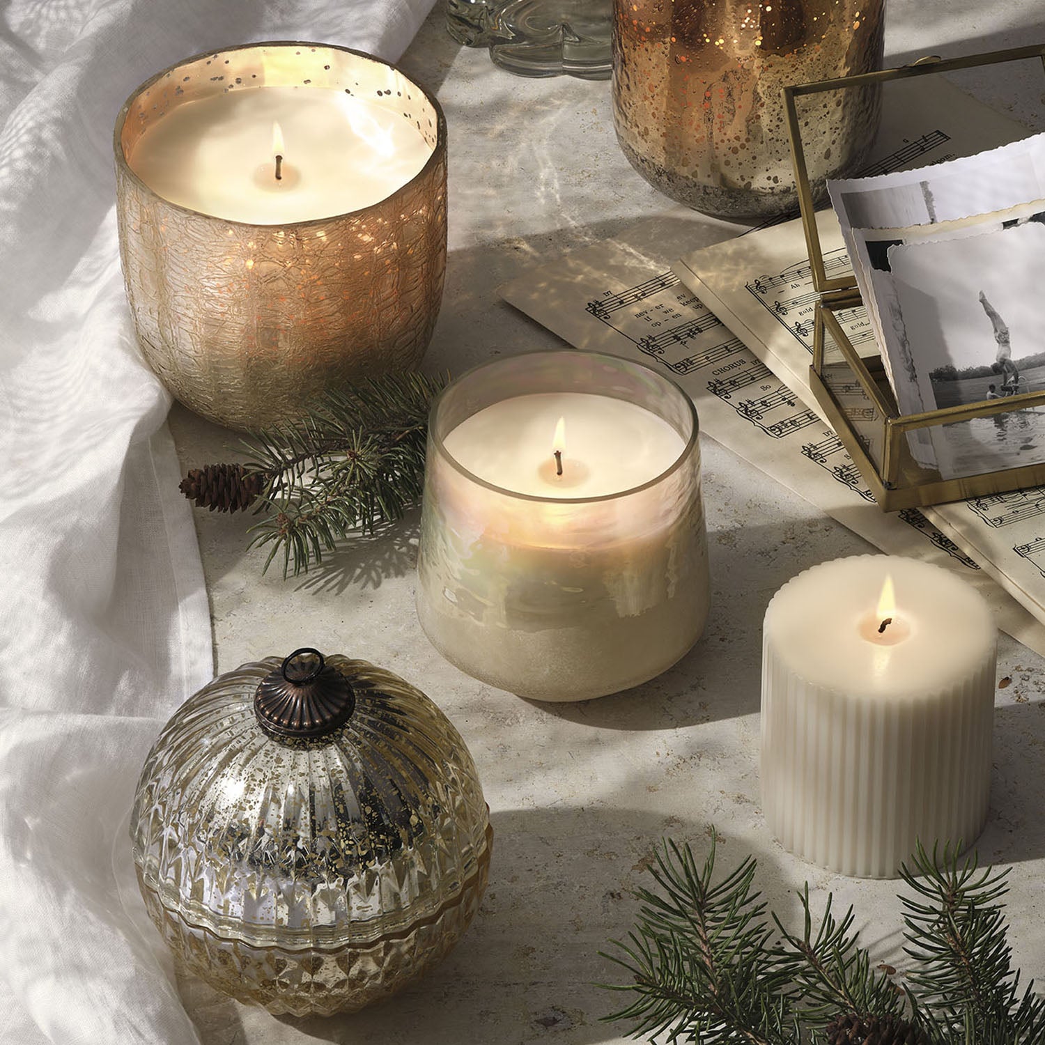 Aromatic evergreen and frosted cypress are dusted with white peppercorn, spicy-cool cardamom and a sparkling citrus nuance. Up to 32 hours of burn time. Soy blend candle poured in the USA. Makes a decorative addition to any room. Cruelty-free.